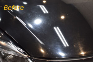 コーティングには、リボルトグループオリジナル低分子・完全硬化型濃度100%のガラスコーティング剤をベースコートに使用し、その上にはUVカット機能が付加されたガラス繊維素の被膜特性を持つトップコートの2層コートで仕上げました。