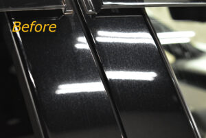 コーティングには、リボルトグループオリジナル低分子・完全硬化型濃度100%のガラスコーティング剤をベースコートに使用し、その上にはUVカット機能が付加されたガラス繊維素の被膜特性を持つトップコートの2層コートで仕上げました。