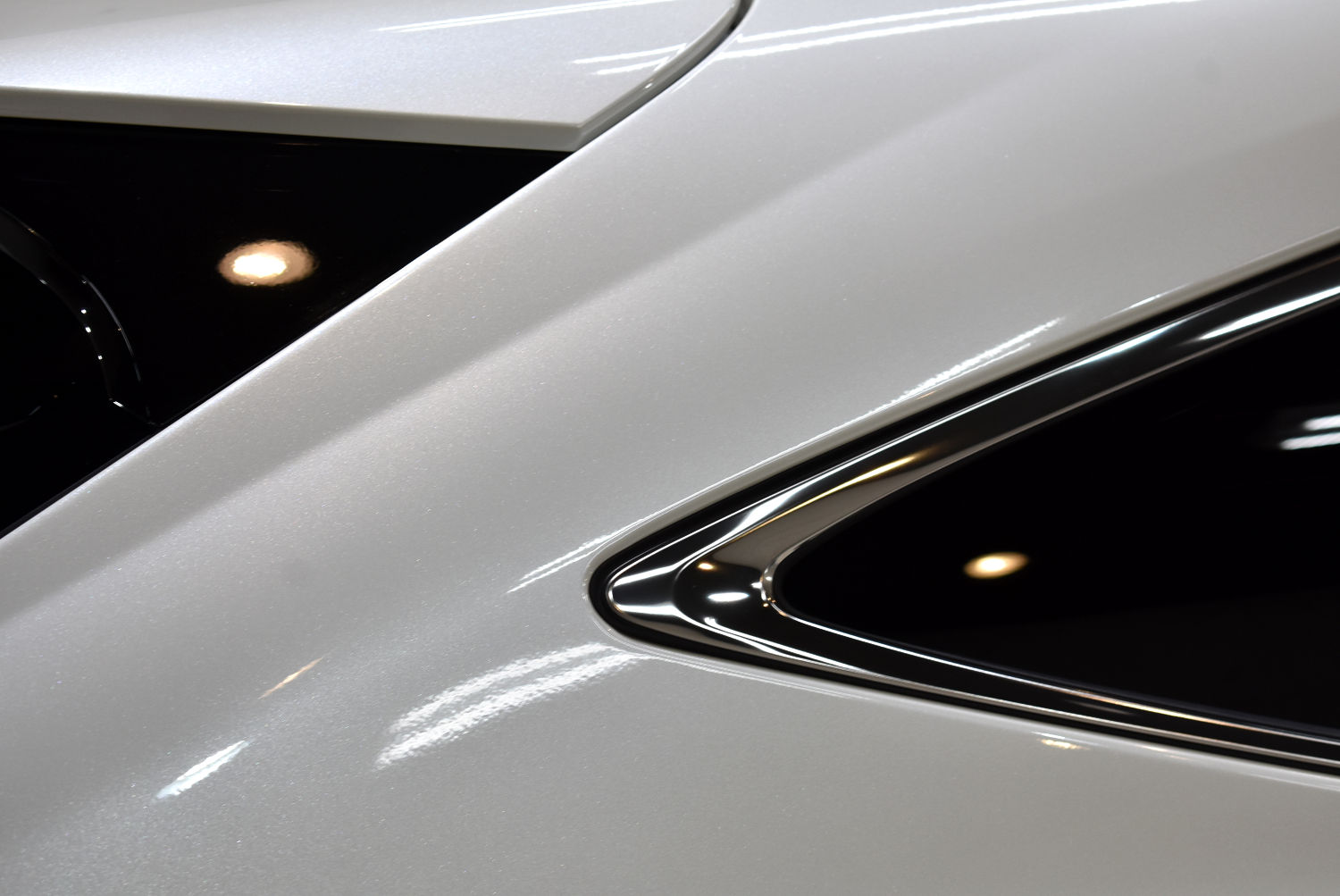 コーティング剤の定着、仕上がりの美しさにも影響する下地処理作業は、しっかりと行うのは勿論ですが、限りある塗装を無駄にする訳にもいきません。グループ独自の下地処理「Revolt adjust system(リボルト アジャスト システム)」にて最小限の研磨量にて磨いていきます。