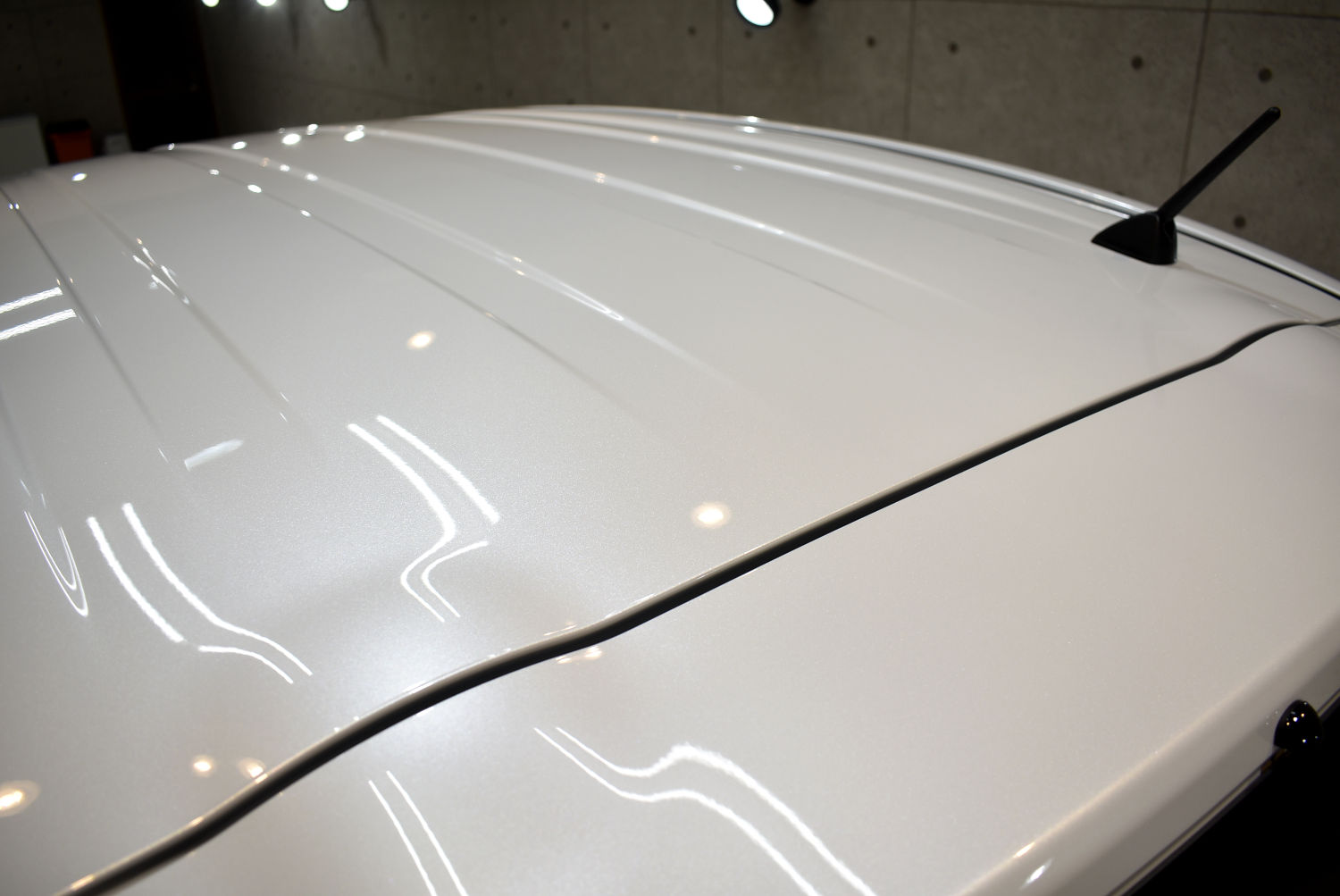 コーティングには、リボルトグループオリジナル低分子・完全硬化型濃度100%のガラスコーティング剤をベースコートに使用し、その上にはUVカット機能が付加されたガラス繊維素の被膜特性を持つトップコートの2層コートで仕上げました。