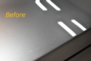コーティング剤の定着、仕上がりの美しさにも影響する下地処理作業は、しっかりと行うのは勿論ですが、限りある塗装を無駄にする訳にもいきません。グループ独自の下地処理「Revolt adjust system(リボルト アジャスト システム)」にて最小限の研磨量にて磨いていきます。