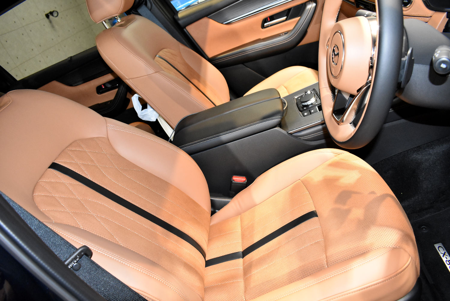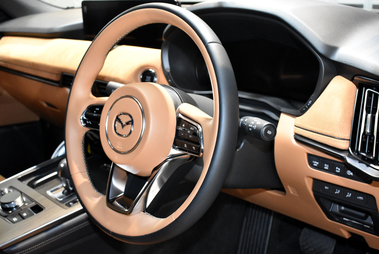 2024年にマツダのフラッグシップモデルとして登場したCX-80。エンジンは2.5Lガソリンエンジンにモーターを組み合わせたハイブリッドと3.3L直6ディーゼルエンジン搭載モデルが御座います。室内は3列シートで6人と7人乗りが用意されています。