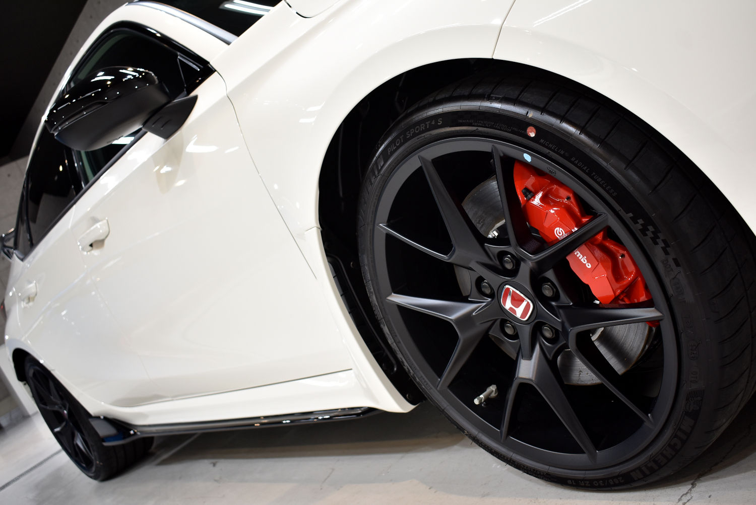 11代目シビックに設定されたタイプR(FL5)は先代タイプR(FK8)からターボチャージャーなど更なる改良を加え、2.0L4気筒ターボエンジンの最高出力は330馬力を発揮します。タイヤも極太の265/30ZR19を前後に装着し、戦闘力の高さが覗えますね。通常のタイプRと異なり内装はブラックを基調として纏められているのが特徴ですね。